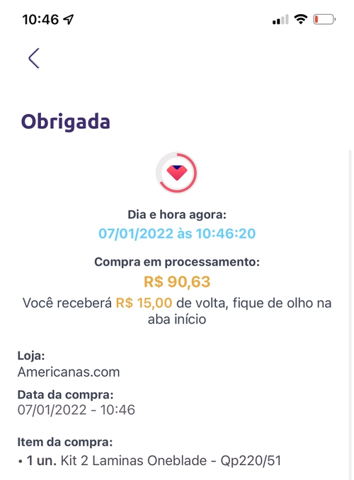 Aqui paguei 45 reais e rendeu 10 reais de cashback.