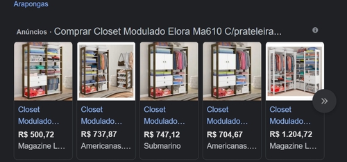 [AME R$ 382] Closet Modulado Elora Ma610 C/prateleiras Branco/ Cedro