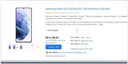 [AME R$ 3899] Smartphone Samsung Galaxy S21 128G | R$ 4399