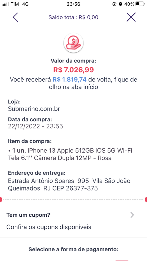Fake, menor preço com AME sc usando saldo fica em 5180 (7000-1820).