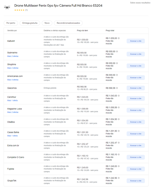 Menor preço encontrado pelo Google Shopping