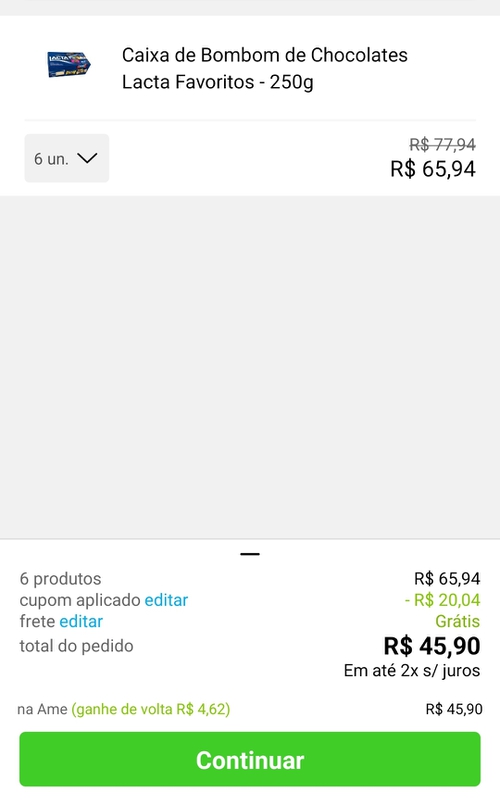 Fazendo a gente de bobo.Aqui deu... 45 reais mais o desconte AME saiu por 40,50. Se dividir por 6 a caixa fica R$ 6,70 (menor que o valor do anúncio).
