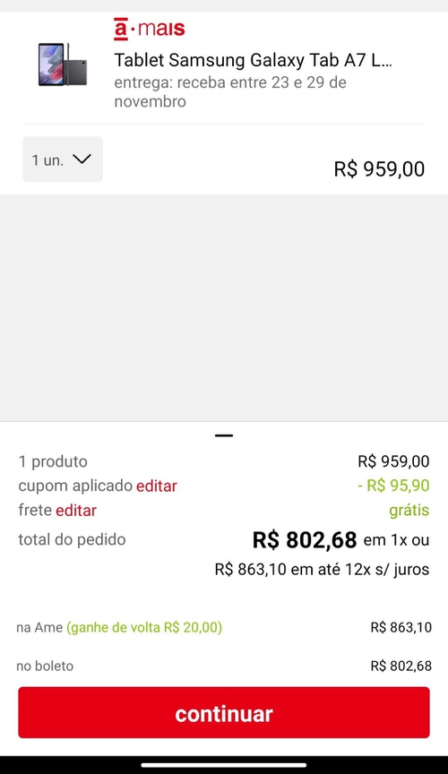 Tem um outro anuncio no app que sai por 769,00 e pra minha cidade que é no centro-oeste de minas entrega em um dia
