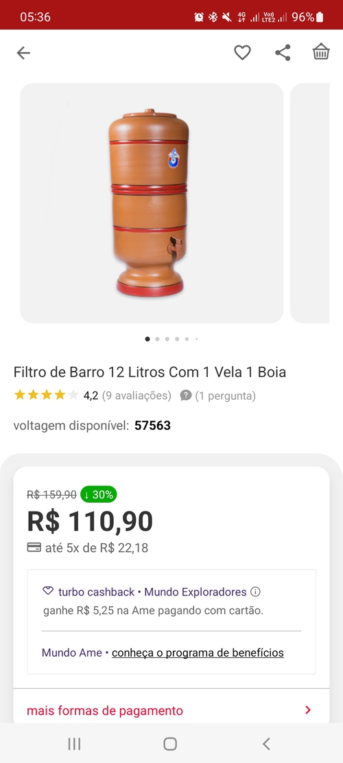 [AME R$ 85,90] Filtro de Barro 12 Litros Com 1 Vela 1 Boia