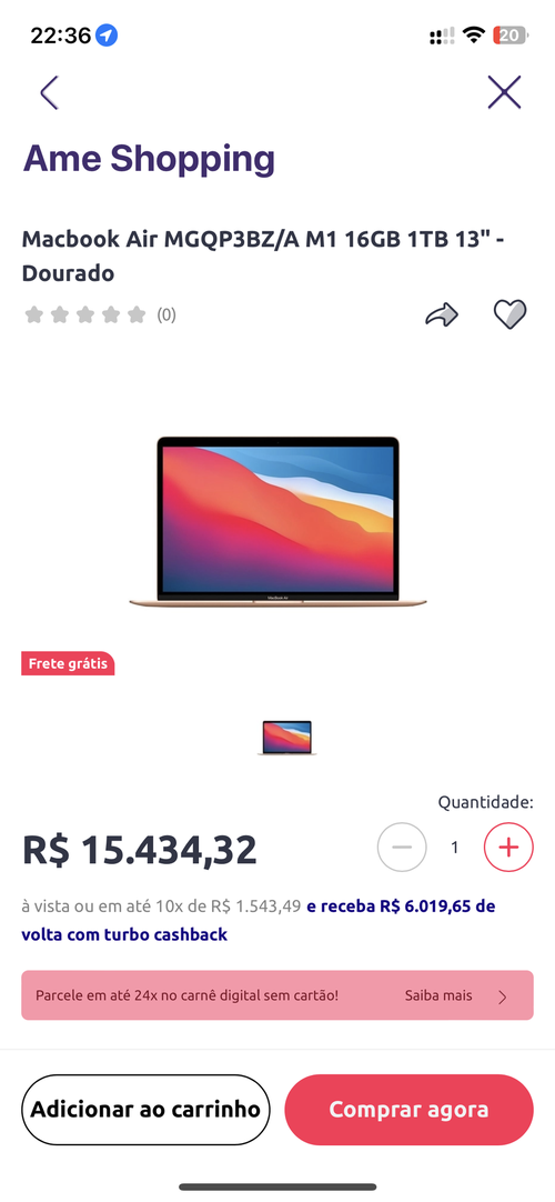 Cashback valido pra super caçadoresColocar em 10x sem juros pra aparecer o cashback.