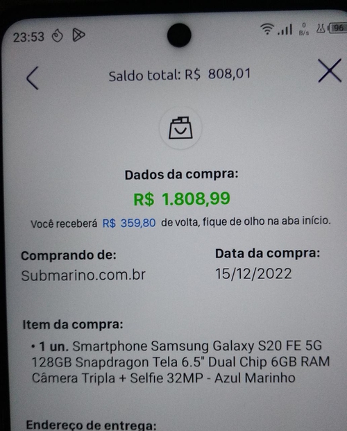 Consegui por 1356, 1823,99 - 467 de cachback, na hora de fechar a venda aparece um valor menor de cach depois que finalizei mudou e ficou maior