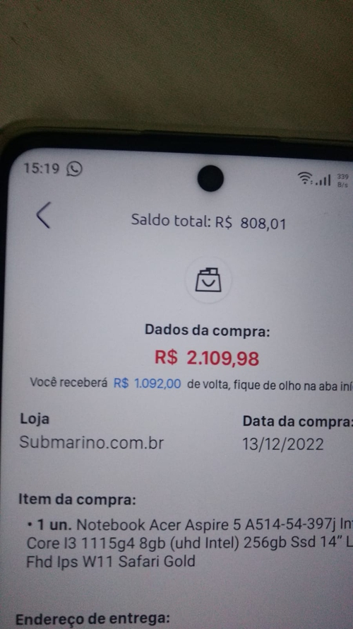 Pessoal, para os que compraram com cashback bugado exibindo só R$ 2,60 Eles Arrumaram a divergência do Cashback? estou com receio de ficar.., e tendo dificuldades no atendimento com eles pra me confirmarem se vão corrigir ou não o valor correto, deveria receber R$ 1092, mas só aparece pra receber R$ 2,60... Tirei Print e etc