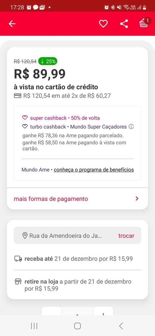 Não é esse valor, cashback de 78 só pagando parcelado, que aumenta o preço pra 129.