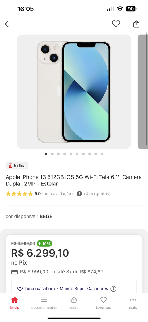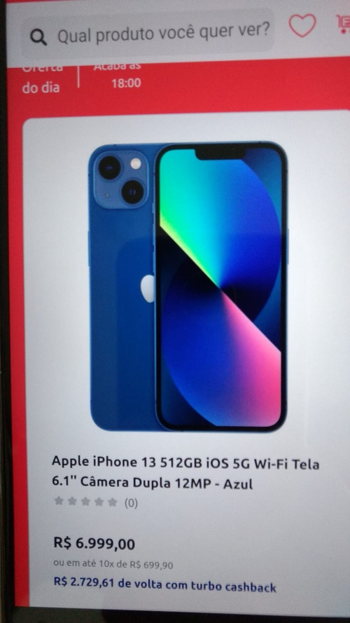 Pessoal mês passado peguei esse iphone 13 128gb no valor de 4824,00 e cashback de 479,90 (que pode ser resgatado e ontem foi liberado) e tbem em 10x esse valor ou seja 10x de 434,..Peguei o azul, mas logo cancelaram. Ainda bem que deu tempo pra pegar o verde 😃