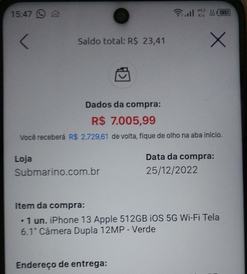 Agora é só vender meu IPhone 12 de 128gb e juntar com cashback pra pagar as parcelas. Kkk. Deu certo aqui e olha que sou do Pá.
