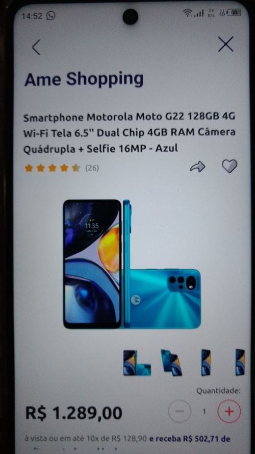 (Ame SC R$ 787) Smartphone Motorola G22 128gb 4G Wi-Fi tela 6,5 4GB AZUL