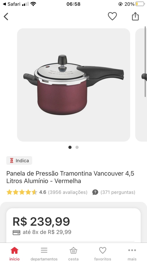 [Ame SC R$87] panela de pressão tramontina vancouver 4,5l