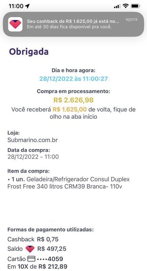 Aqui nao chega nunca a isso..702 de cashback. Sem contar que para RJ não entrega.. tem que começar e pensar em Procon nessas "ofertas" da AME.. se há algum lugar que entregue ou que realmente chegue a estes valores eles tem que informar de forma clara no SITE/APP.