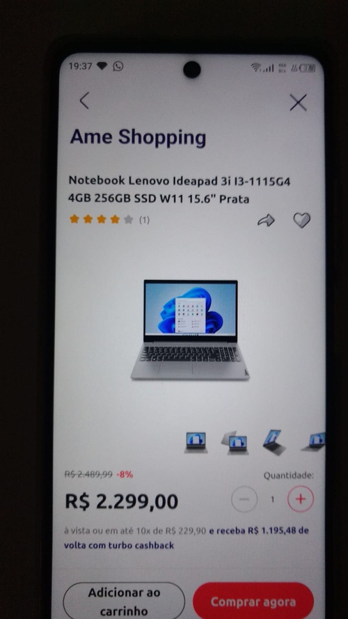 Bom preço! Mas também no shopping AME, o ideapad 3 Rayzen 5 8GB 256gb ssd é w11 está saindo por $1.262 e para alguns pode ser mais vantagem.