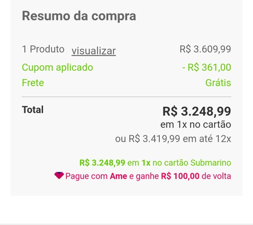 Ou R$ 3.248 sem o ame em 1x
