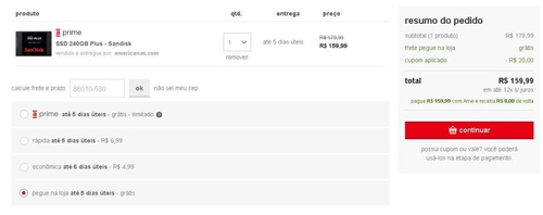 [AME] SSD 240GB Plus - Sandisk - R$160 (ou R$152 com Ame)