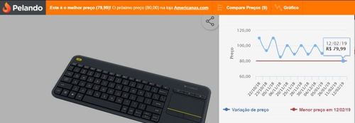 [AME] Teclado Wireless Touch Keyboard K400 Plus TV - Logitech - R$80 ( Com AME R$40)
