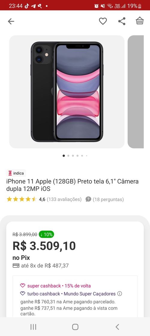 Não chega pq com ame aumenta o valor... Todo mundo postando sem ver isso