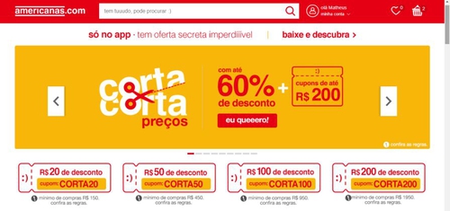 1.1. Os 10.000 primeiros clientes que cadastrarem o cupom "CORTA20" e finalizarem a compra (“Participantes”) no período entre os dias 03 de Outubro de 2019 até o dia 07 de Outubro de 2019 terão direito a um desconto de R$ 20,00 (vinte reais), que será aplicado apenas nas compras acima de R$ 150,00 (cento e cinquenta reais) na americanas.com, exclusivamente sobre os produtos (o desconto não se aplica ao valor do frete).