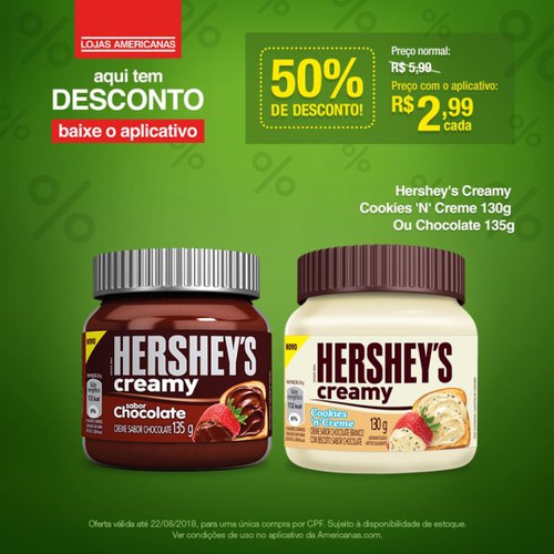 [Americanas - Loja Física] Hershey's Creamy Cookies 'N' Creme 130g ou chocolate 135g por R$ 2,99