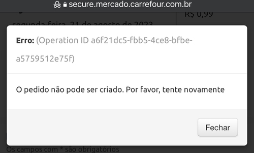 Não consigo comprar nada no site, só da erro.