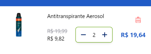 Os desodorantes de 250ml da Rexona quando adiciona 2 um no carrinho não está dando o desconto correto. Fica a dica.