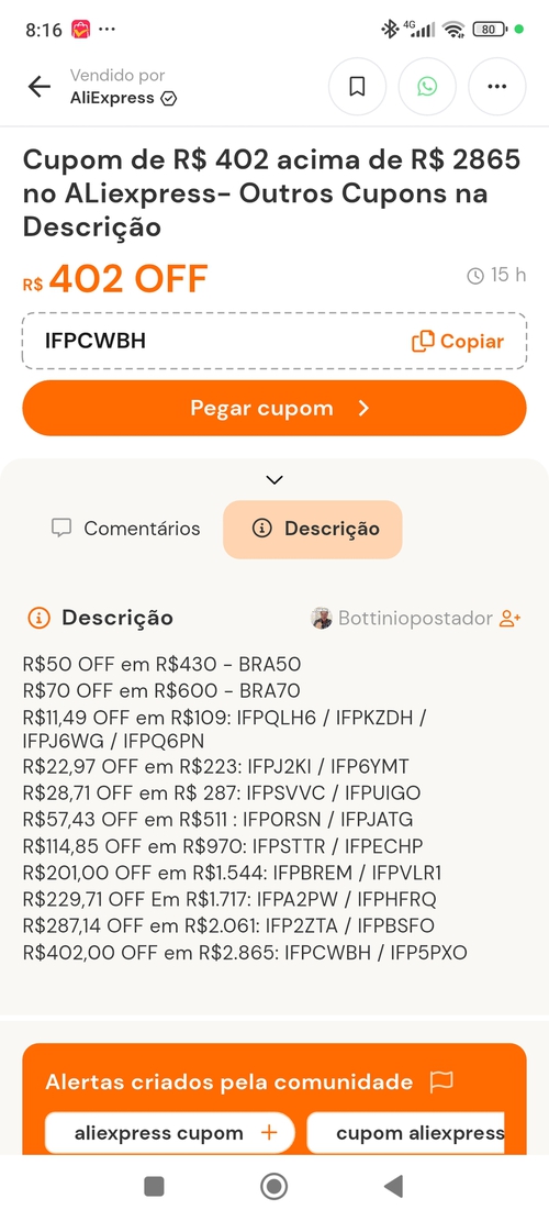 IFPTCXI(no Aliexpress) + ALI50(no Pagaleve)