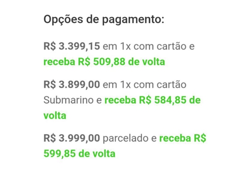 Uai mano eu sei fazer conta kkk tá saindo R$3.899,00 com o cashback do AME cai pra R$3.399,00