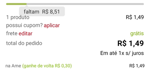 Caraca, ainda meti cashback 4% + AME + CUPOM, saiu 15 por uns 12 conto kk