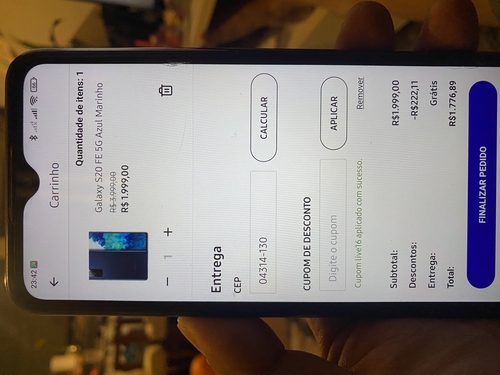 Que enganação de loja da Samsung, quando você vai todo animado para finalizar a compra o valor é auterado o cupom sai , agora voltei pelo site já alterado o valor .