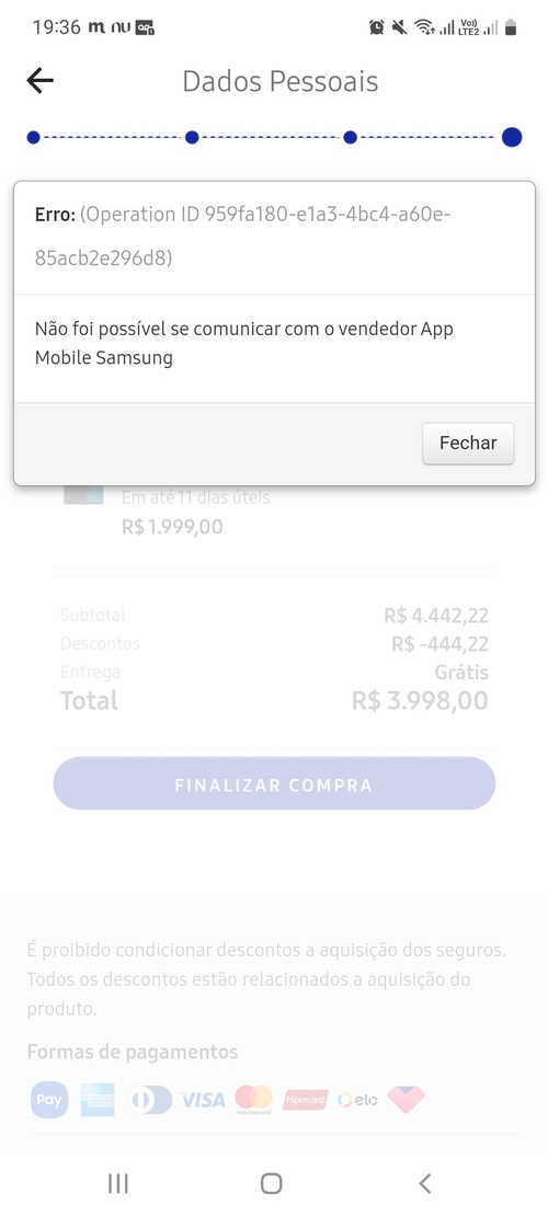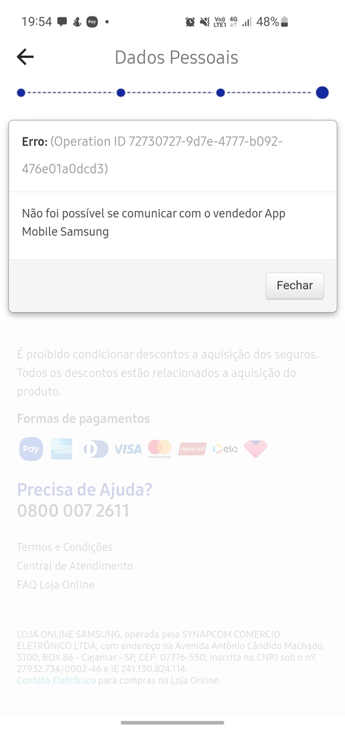 Pra mim tá com esse erroalguem conseguiu pegar outro aparelho? o s22 ultra por exemplo, que tava 4800 pra estudante, agora ficou quanto?