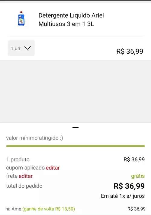 (APP/AME R$18,49) Sabão Líquido Ariel Cores Radiantes Toque de Downy 3L