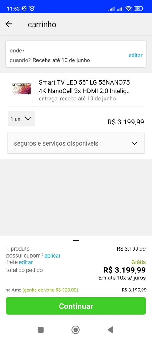 (APP / AME - R$2.879) Smart TV LED 55” LG 55NANO75 4K NanoCell 3x HDMI 2.0 IA