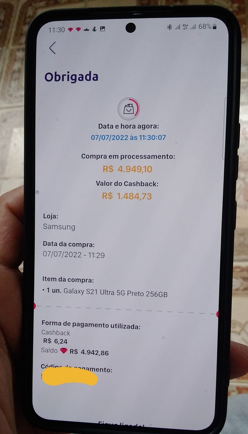 Eu comprei aqui e deu certinho. O cashback só apareceu depois de finalizar a compra mesmo. Obrigado, amigo! Fico feliz que finalmente tenhamos conseguido comprar o S21 Ultra nessa condição hehe