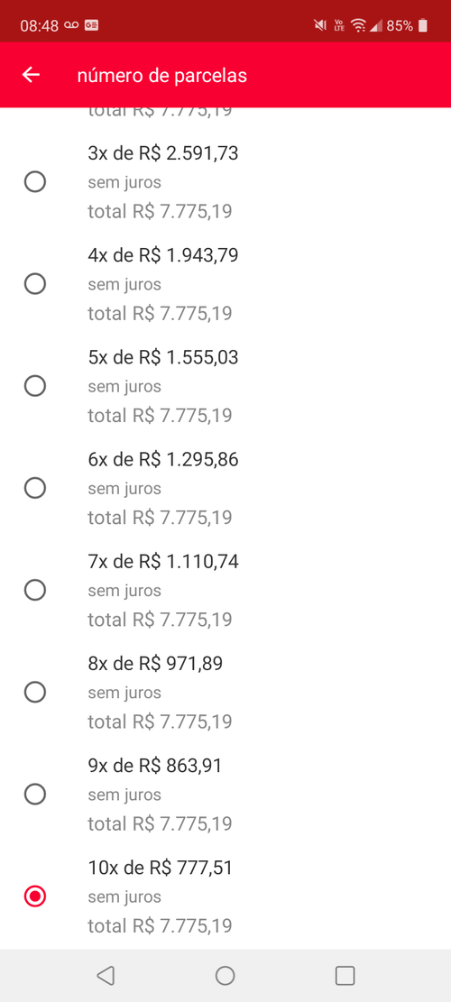 Via site e via aplicativo não chega no valor