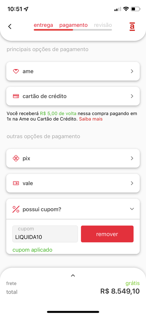 Porém quando vai pro carrinho o valor do produto vai pra 9589 e vlta pra 8630 ao aplicar o cupom.