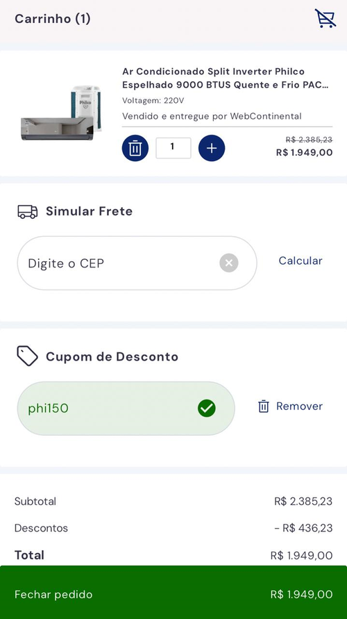 [App] Ar Condicionado Split Inverter Philco Espelhado 9000 BTUS Quente e Frio PAC9000IQFM15E 220V