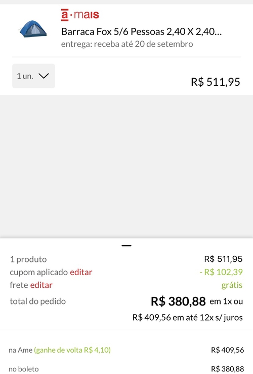 Obrigada, não comprei essa barraca, mas consegui aplicar o cupom em uma barraca que já estava acompanhando a muito tempo e consegui o menor valor nela.