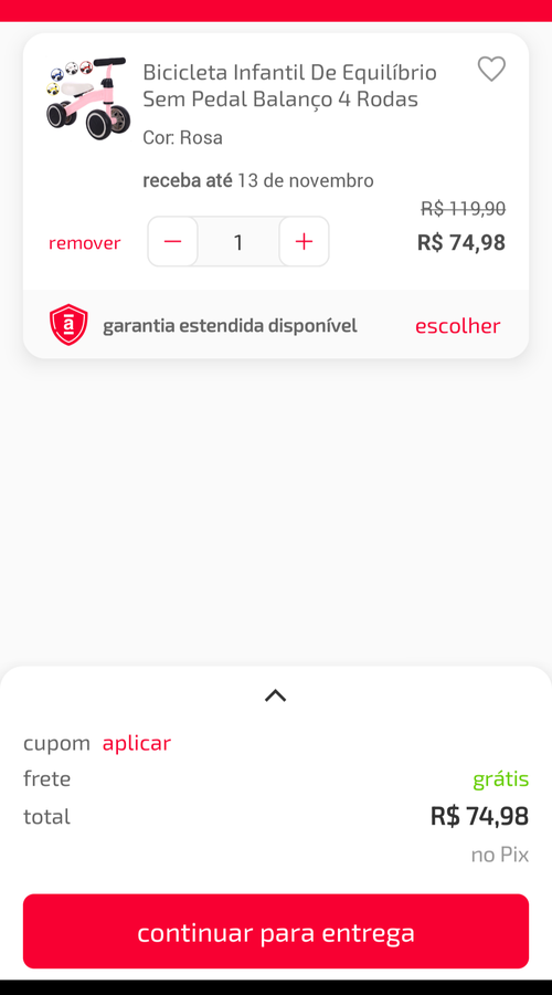 [APP] Bicicleta Infantil De Equilíbrio Sem Pedal Balanço 4 Rodas