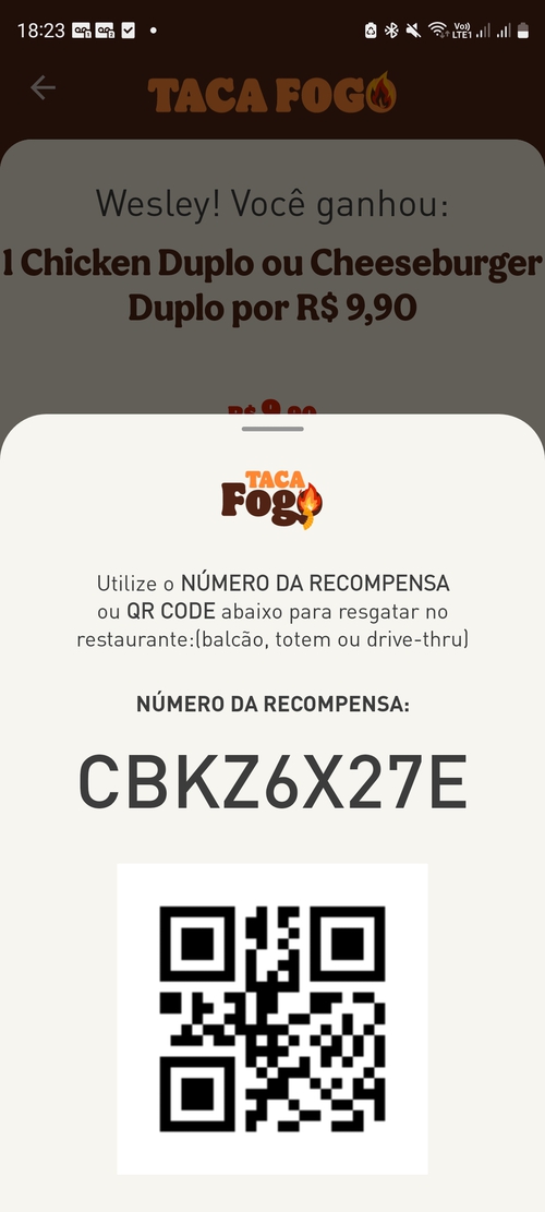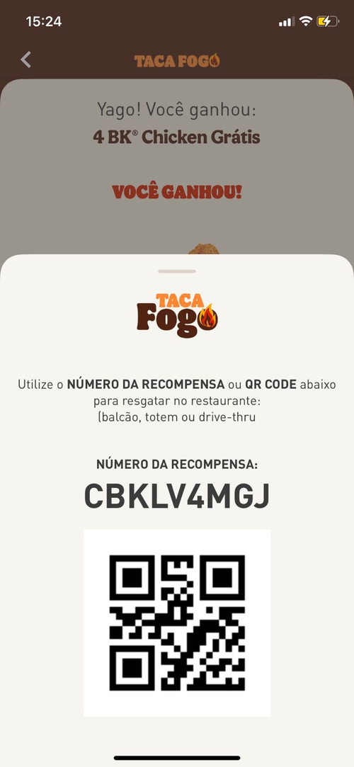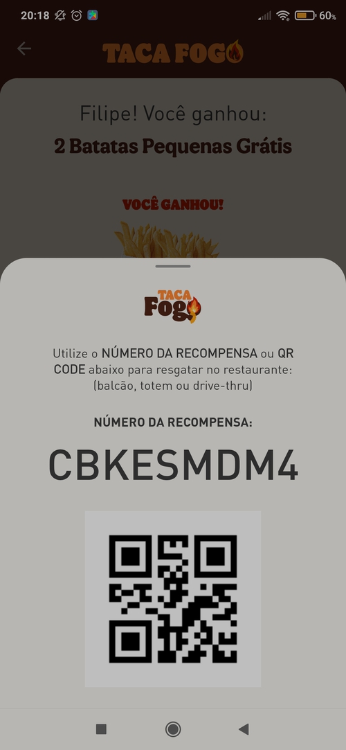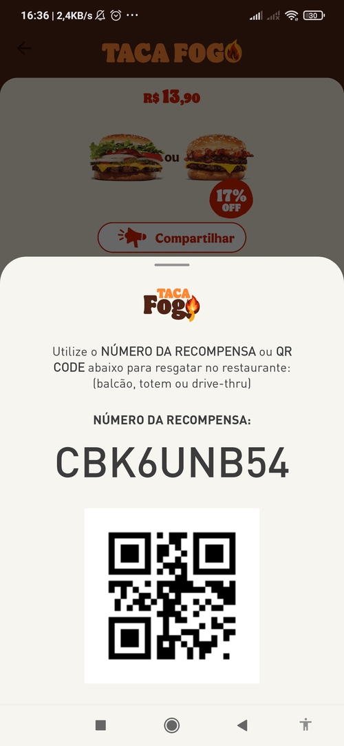 Caso não seja contemplado com um lanche grátis ou com algum cupom de desconto, você ainda poderá ter uma segunda chance usando o código de outra pessoa no aplicativo (fica abaixo do QRCode da promoção, código de 6 dígitos)