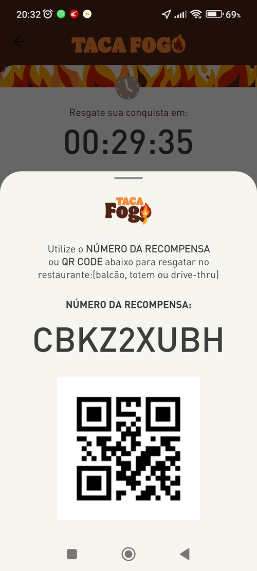 VOCÊ TEM ATÉ 30 MINUTOS PRA RESGATAR O PRÊMIO EM UM TOTEM OU NO CAIXA DO RESTAURANTE!