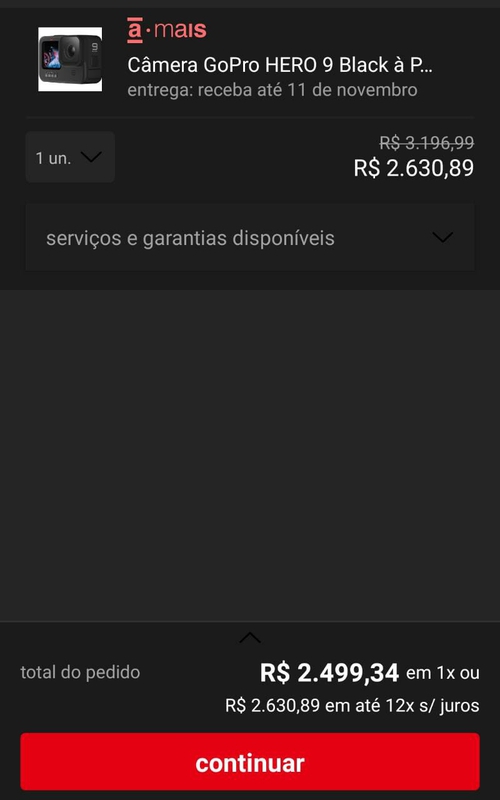 pagando a vista/1x no cartão por R$ 2499 ou em 12x por R$ 2630, preço só no APP