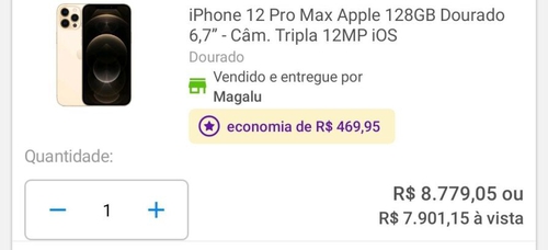 [App + C.Ouro] Iphone 12 Pro Max 128GB Apple 6,7" Câmera Tripla | R$7901