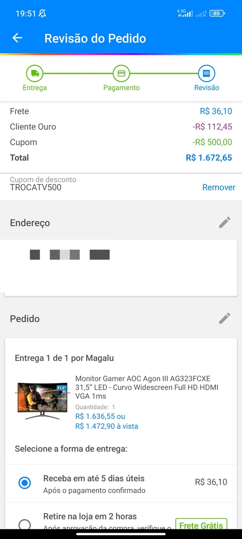 [APP][C. OURO]Monitor Gamer AOC Agon III 31,5” LED AG323FCXE