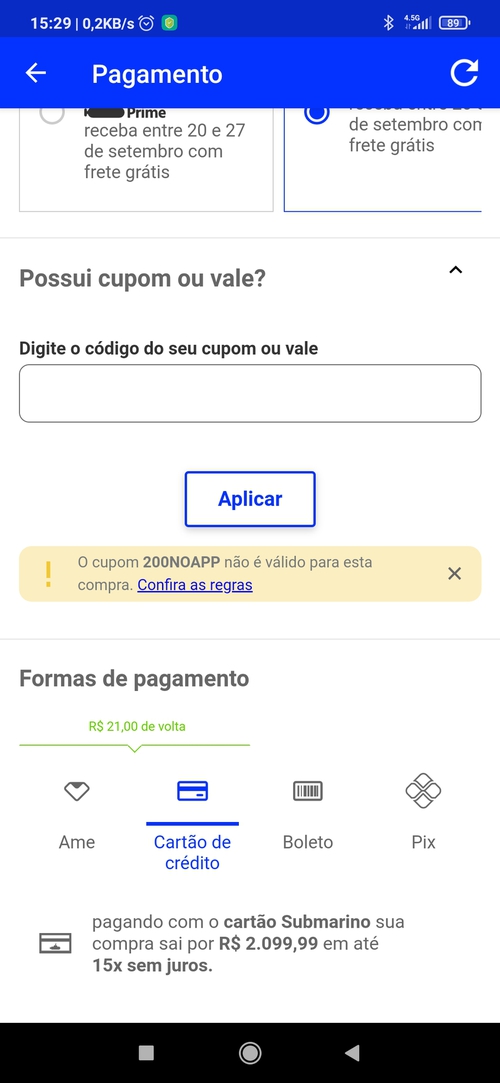No app da loja com o cupom 200NOAPP fica R$1899 parcelado em 12x sem juros. Para a minha localidade deu frete grátis.