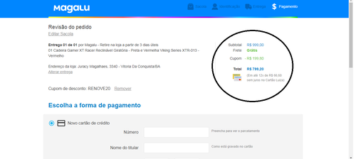 Peguei a azul, estava procurando a tempo uma com custo benefício com. Vai ser minha primeira cadeira gamer. Aqui ficou 799 com frete grátis entrega em 1 dia útil