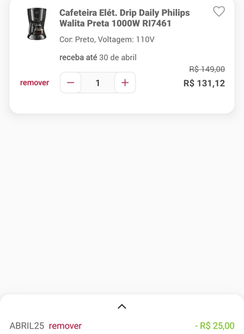 (APP) Cafeteira Elétrica Drip Daily Philips Walita Preta 1000W RI7461 - 40 xícaras