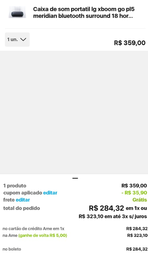 Aqui ficou 315 com cupom, N bate esse valor aí não.