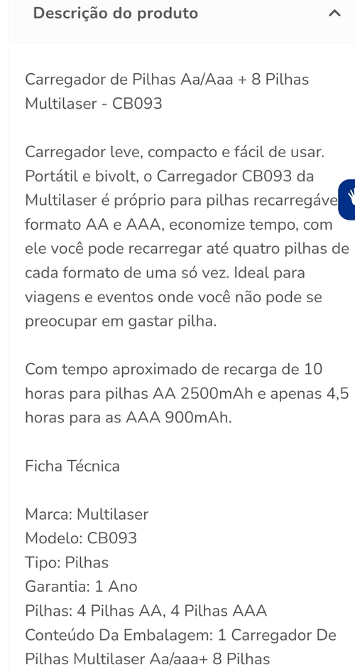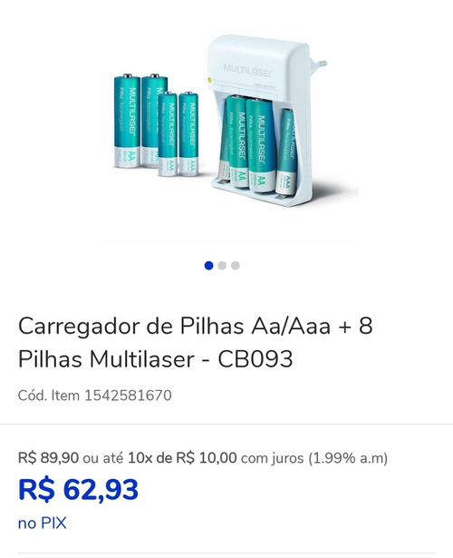 (APP) Carregador de Pilhas Aa/Aaa + 8 Pilhas Multilaser - CB093