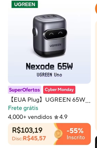 Não consegui pegar o desconto mas na amazon está por 167 o de 65w. Será que é original ? vendidod por Vendido por ZHIYUN BRASIL.